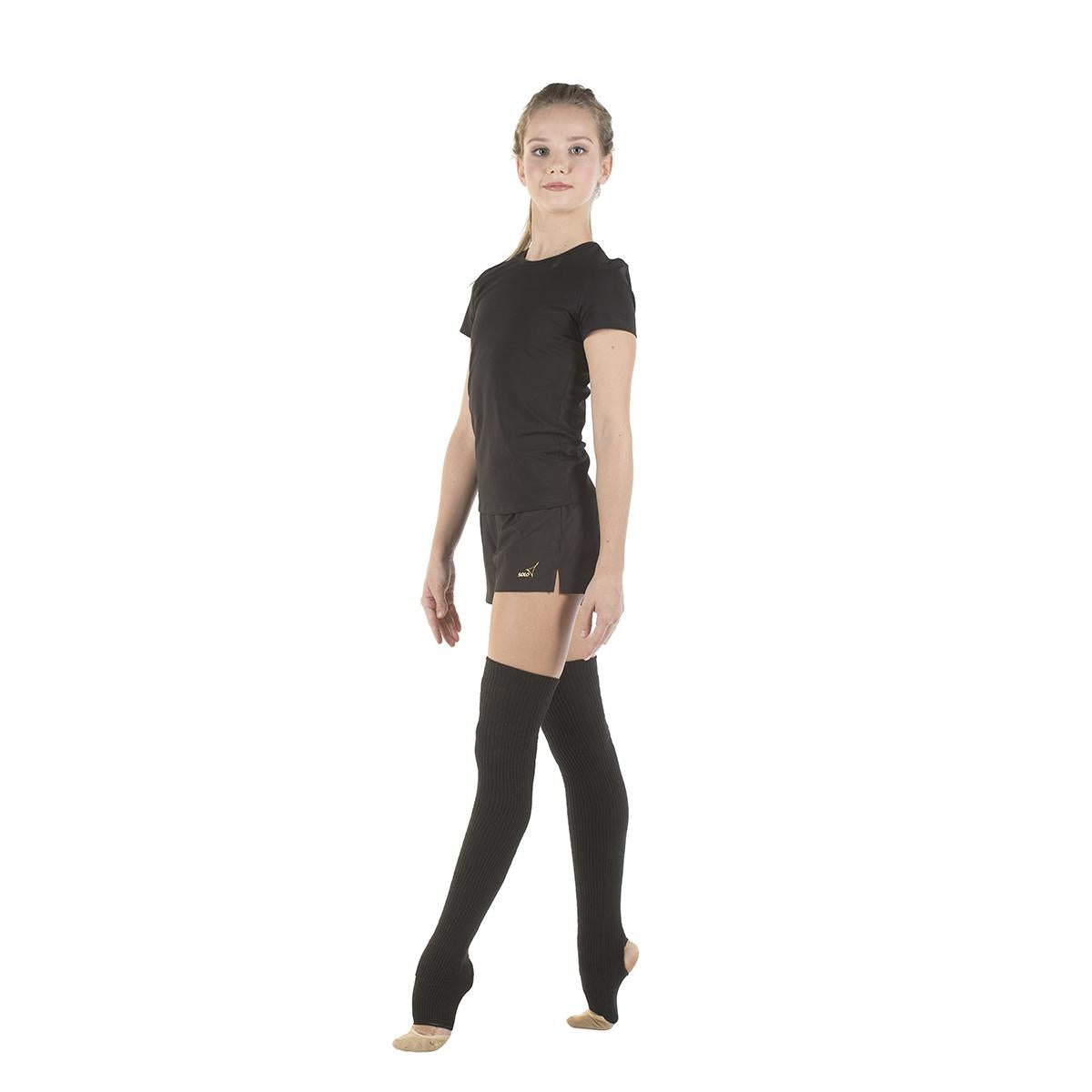 Los calentadores con medio pie fucsia de punto son una parte integral de cualquier look de ensayo. El accesorio favorito de la bailarina le permite calentar rápidamente los músculos y ligamentos y retiene el calor. Calentadores de punto circular sin costuras con abertura en el talón. El talón y la puntera están reforzados con silicona. El puño elástico con elástico adicional mantiene las polainas ceñidas a la pierna.